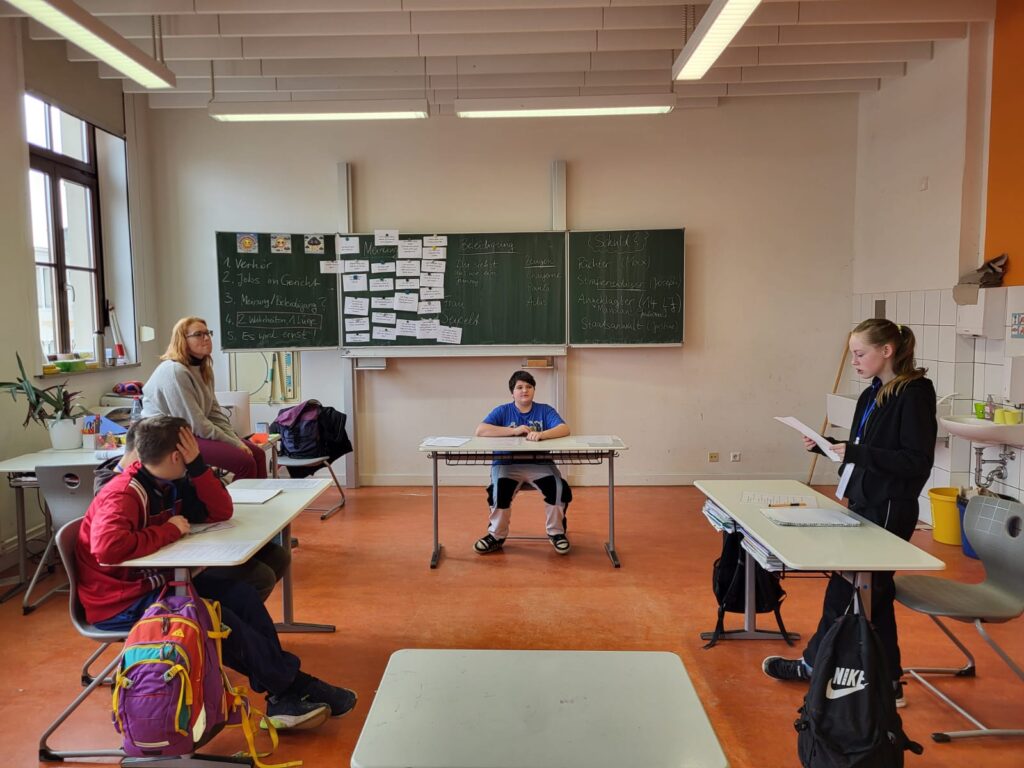 An 2 Tagen hatten die Klassen 7a und 7b die Gelegenheit in die Arbeit der Justiz Einblick zu erhalten. Mit freundlicher Hilfe der Anwälte Anja Seipelt und Patrick Blum, ist es den Schülerinnen und Schülern der Klassen 7 gelungen sich von dem nicht ganz so leichten Beruf der Rechtsprechung ein Bild zu machen. Durch gezielte Fragen, Kombinationsgabe und natürlich auch spannenden Geschichten sowie Tipps konnte den Schülern ein Stück der Arbeit eines Strafverteidigers, Staatsanwaltes und Richters in einem Rollenspiel nähergebracht werden!
